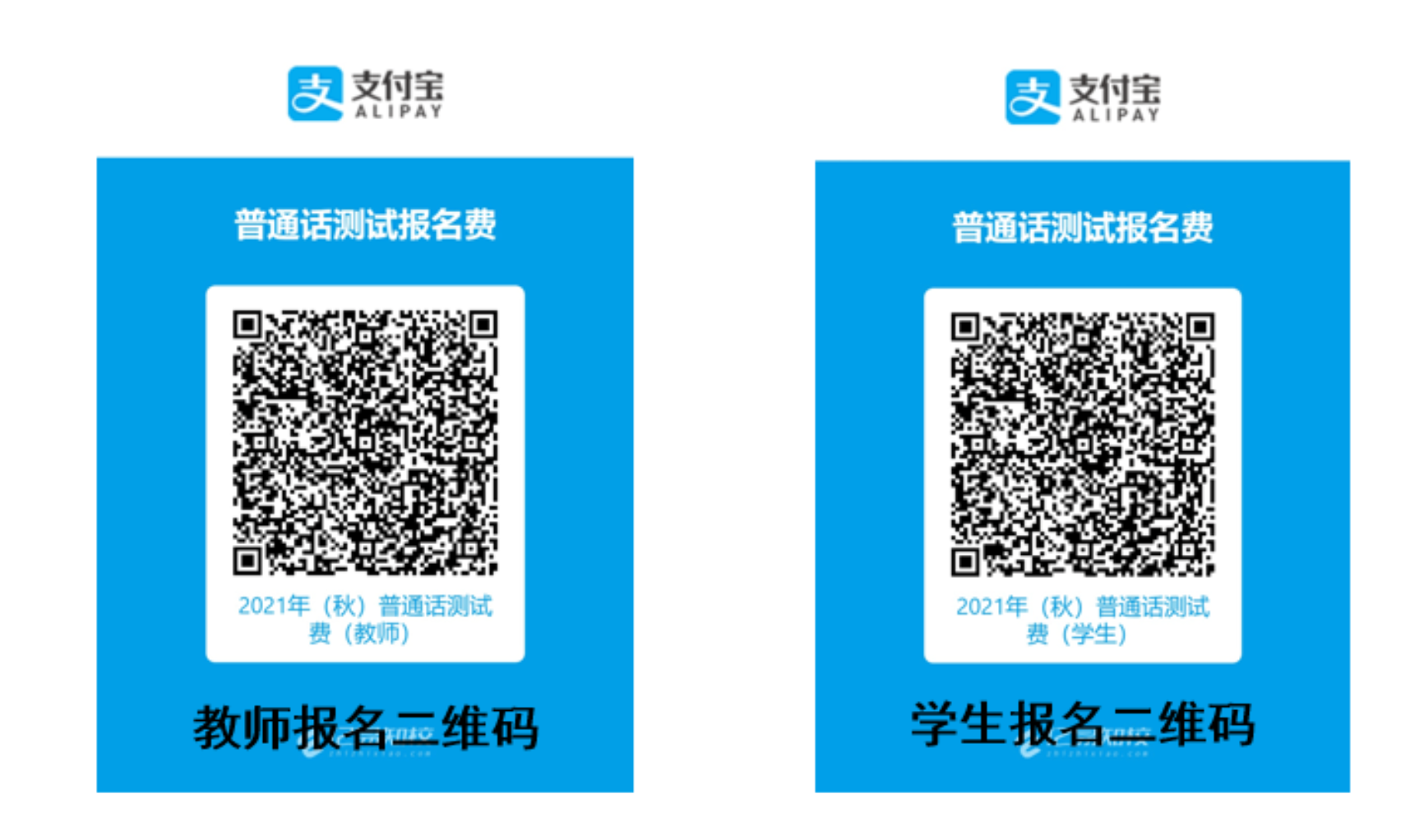本次报名设置“教师”和“学生”两个报名通道。请拟参加测试的师生使用支付宝扫描下方相应二维码报名并缴纳测试费。