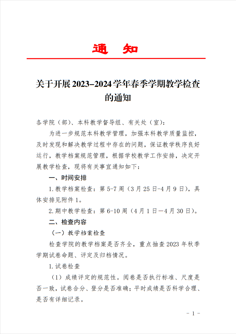首页» 通知公告» 关于开展2023-2024学年春季学期教学检查的通知
