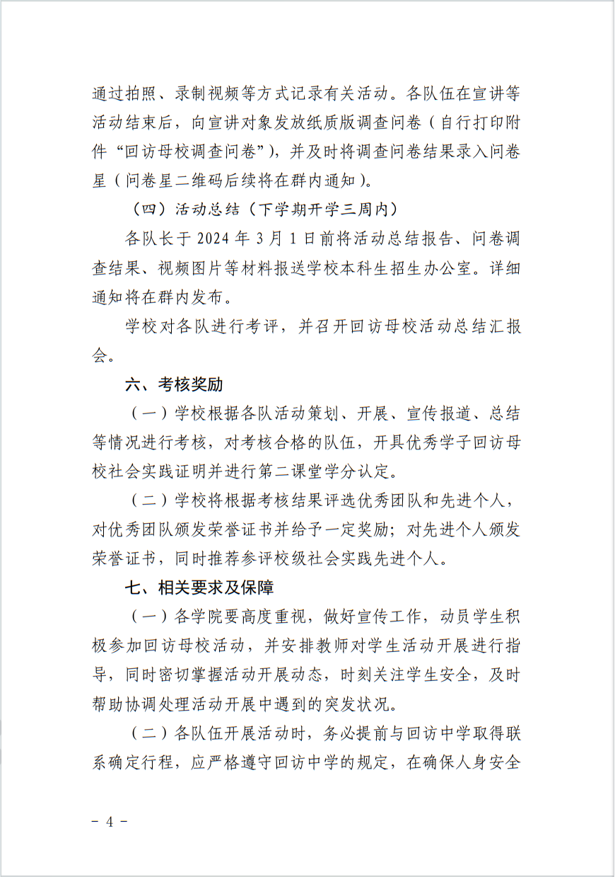 首页» 通知公告» 关于开展 2024 年寒假优秀学子回访母校社会实践活动的通知