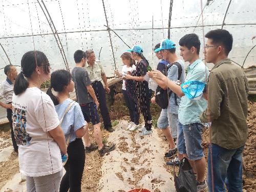 志愿服务对象李保印进行大棚种植已有8年,近年来,他发现大棚中所种植的西红柿产量逐年下降,经过一番探讨,队员们认为有必要对大棚土壤进行采样分析看看问题到底出在哪里,在学习并掌握了土壤采样的知识以及联系好土壤分析实验室后,6月14日下午,队员们来到了寨小西村李保印的大棚里。