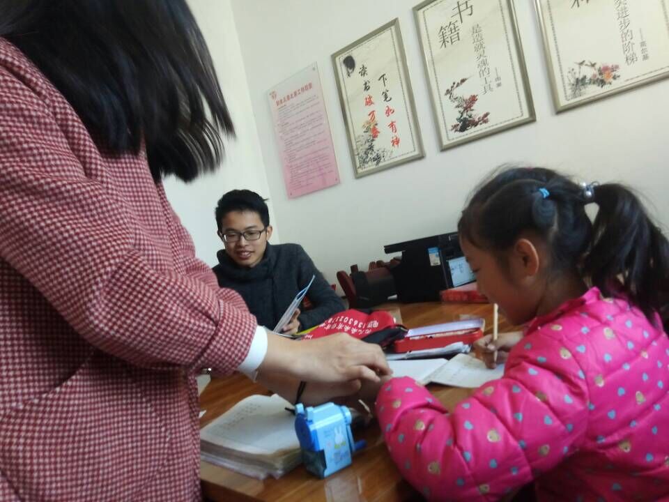 上午8点半小分队乘坐公交车前往了郭管村,郭管村的村干部接待了小分队,并把留守儿童关爱服务中心作为讲课的教室。小朋友大多数年龄较小、天性爱玩,学习对于他们来说是一个复杂的过程。在支教的过程中小分队采取了一对一的教学方式,极具耐心地给小朋友讲解拼音,一步步引导小朋友去思考。郭子萱小朋友才读二年级,乘法表对她来说都比较困难,一个简单的乘法,可能也要想很久。在辅导她时,小分队成员李佳欣同学耐心地给她讲解乘法口诀,用各种形象的比喻去引导她思考,最后成功地辅导她写完作业。李云飞同学感慨道“在支教过程中我们注意到,小朋友大多数都是奶奶在带,在农村这是一种普遍的现象,这也更加激起了我们的责任心,作为大学生我们应该有这样的责任感。我们已经坚持了半年时间了,基本上周末有时间我们都会去支教,我们可以感觉到,家长们十分地感激我们,这是对我们支教工作极大的肯定,觉得自己在做一件特别有意义的事情”。