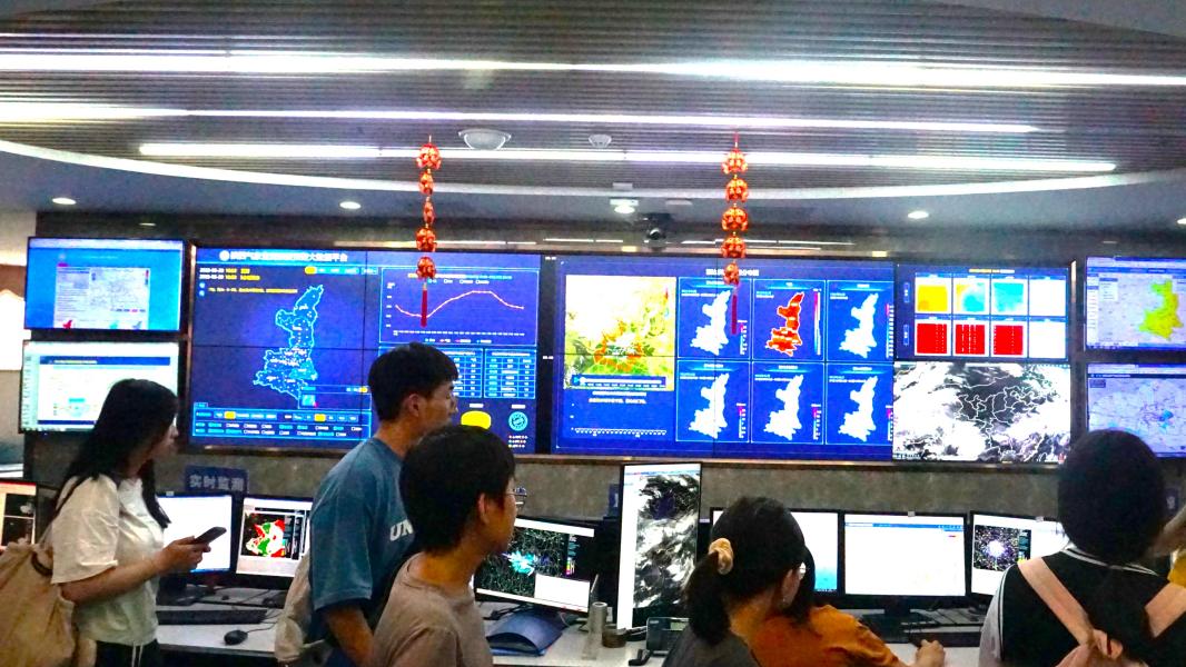 夏意初至,天光明媚,正是“绝知此事要躬行”的好时节。同学们走出了机房,走进了单位,切身感受专业的工作环境。气象,是科学研究大气运动和大气现象的一门学科,它与人类的生活密切相关,具有重要的经济、生态、安全方面的影响。在西安市气象局,通过观看人工影响天气的宣传影片、人工防雹、增雨作业过程,参观作业飞机模型,使同学们了解了工农业生产需求和天气形势,思考了实施人工干预的意义及人类改造利用大自然的潜力和局限性。深入陕西省农业遥感与经济作物气象服务中心,通过工作人员专业而翔实的汇报,同学们了解在遥感监测与气象技术结合下,其在农业、生态方面具有的重要职责。在陕西气象局的气象监测预报预警大数据平台,视觉化气象信息与处理界面呈排列式地展现在师生们的眼前,实时更新的影像尽显专业;陕西省突发事件预警信息发布中心基于气象对各行各业的显著影响力,发挥防线作用,保障社会发展。