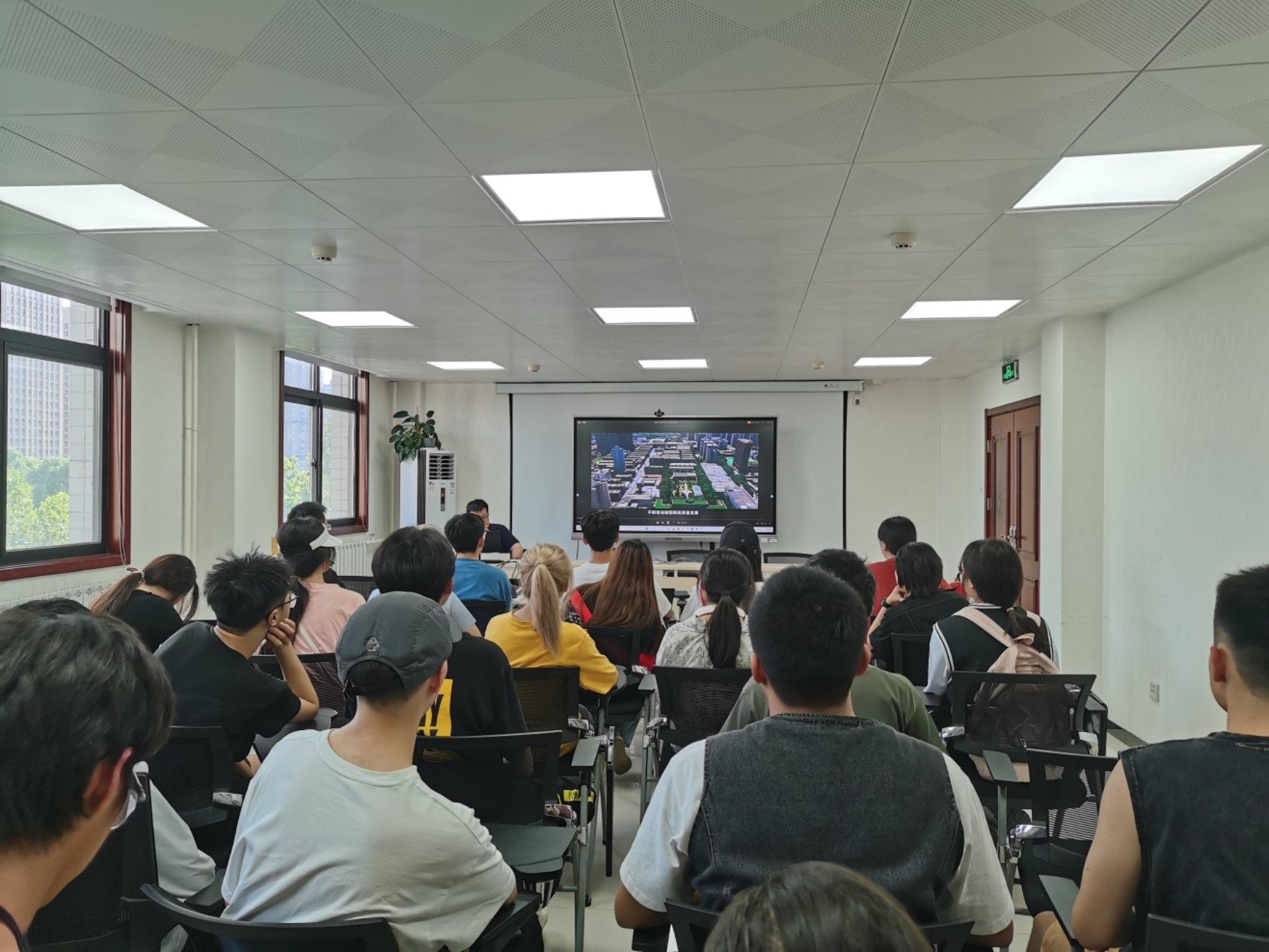陕西测绘地理信息局作为全省该领域专业的代表,展示的三维建模效果自然精确美观。通过观察专业人员产出的西安城墙内建筑的建模成果,同学们自然地联想到近期有关三维建模的实习中遇到的困难,也让同学们意识到本次实习是由自主探索到拓展视野的难得机会。该三维地理信息平台中具有良好的可视化效果,更好地反映了建筑特色和逻辑结构,彰显了测绘地理信息局对大型建筑物建模的技术经验与技术实力。在现场,工作人员对使用软件,是否手动建模等问题的回答交流中,使同学们对三维建模有了更深层次的理解。展示过后,有西农的学长以测绘地理信息局为背景,为同学讲述其就业经历,展示森林站点清晰卫星图,并讲解测绘地理信息局的职能分流分工,加强职业规划观念,同时积极解答发展方向与薪资问题,为同学们对未来就业的迷茫心态亮起了一盏灯。在测绘地理信息局,走廊上优秀人才的宣传海报都让同学们产生了一定的钦佩与向往之情。