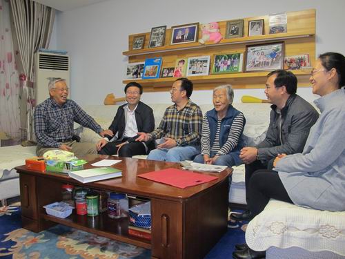 学院领导与这些退休的老教师亲切交谈,表达了学院对他们的慰问与关心,感谢他们为学院的事业发展做出的贡献。并询问他们的身体与生活情况。这些老教师退休后仍以饱满的事业激情,心系国家、心系学校、执着有为、坚持工作、奉献余热。李生秀教授、张一平教授退休后继续整理自己的科研成果,发表高水平的论文,出版多部著作;李生秀教授于2011年获国家科技进步二等奖;张一平教授于2013年获陕西省科技进步二等奖;1935年出生的李立科,顶着满头白发,仍旧躬耕在渭北高原,继续为我国的旱作农业发挥自己的余热。