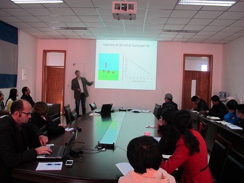 David Chadwick教授做了题为“Managing losses from different nitrogen forms applied to agricultural soils”的报告,对土壤中不同形态氮素损失的调控做了详细的介绍,Maria Pilar Bernal教授做了题为“Composting of organic wastes: Principles and practice. Quality assessment of compost for agricultural uses”的报告,全面介绍了堆肥工艺流程,并结合经济效益对其技术在实践中的应用做了展望。Sven G. Sommer教授做了题为“Ammonia emission from livestock manure management chain GHG emission from liquid and solid manure”的报告,介绍了其团队在研究土壤氨挥发方面的研究进展,比较了不同施肥方式的经济、环境效益。会议期间,与会者积极与外国专家讨论交流,获得了有益的借鉴与思考。