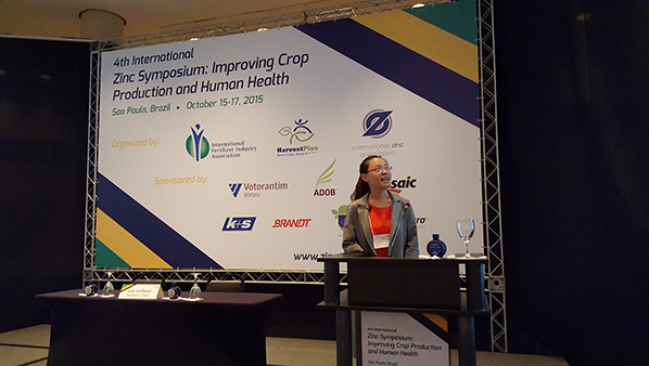 10月15-17日,《第四届国际锌研讨会》在巴西圣保罗举行。我院2012级博士研究生李萌受邀在大会上作了“Improving nutritional quality of whole grain and flour in winter wheat through foliar Zn combined with N or/and P applications”的报告,成为本次国际会议邀请的唯一一位中国籍博士研究生。李萌同学的导师田霄鸿教授及另一位博士研究生王少霞也应邀参加。能受邀参加此次会议,既是国际学术界对我国研究水平的认可,也对提升我校在国际上的影响力发挥了很大作用。