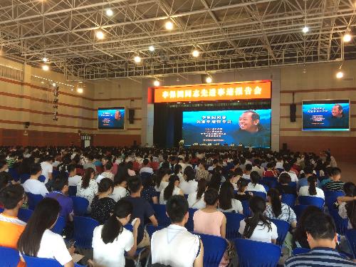 为提高党员自身素质,深化党全心全意为人民服务的宗旨,6月20日下午,我校特邀李保国同志先进事迹报告团成员来到我校,在北绣山活动中心为广大师生做了报告,我院全体党员、预备党员、入党积极分子均到场聆听了该报告。