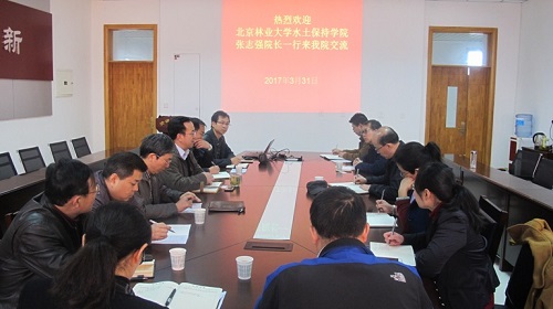 3月31日,北京林业大学水土保持学院院长张志强一行4人来我院座谈交流水土保持与荒漠化防治专业本科生实践教学,水土保持学科建设,实验室与野外定位观测研究台站建设、运行、考核与评价,大学生思想政治教育等方面的工作与经验。学院吕家珑院长、田长河副书记、院长助理张青峰、水保系系主任王进鑫教授、朱首军副教授、王健副教授及实验室负责人参加了座谈会。