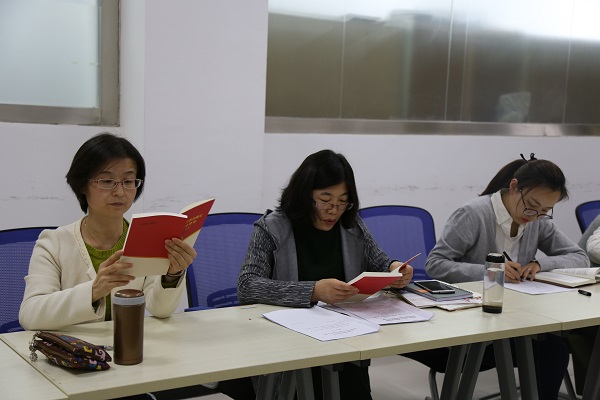 首先,黄懿梅解读了“习近平在全国高校思想政治工作会议上发表重要讲话” 并结合电视剧《人民的名义》里所演绎的教授的形象,提出高校教师里确实存在一些不好的现象,影响了人们对高校教师的看法,我们要认真学习和贯彻落实全国高校思想政治工作会议精神,要严格践行习近平总书记对教师提出的要求。然后,青年教师党员宋籽霖、蒋锐分别领学了“坚持走自己的高等教育发展道路”、“始终坚持社会主义办学方向”和“沿用好办法 改进老办法 探索新办法”等学习文件。