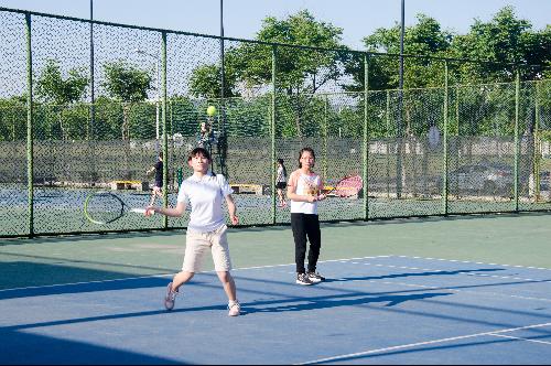 资环网球队共有队员17名,其中大一9人,大二8人。为迎战院系间网球比赛,他们在赛前3个月就进入了备战状态,每周的周二周四周五晚7点到9点半训练2个半小时。