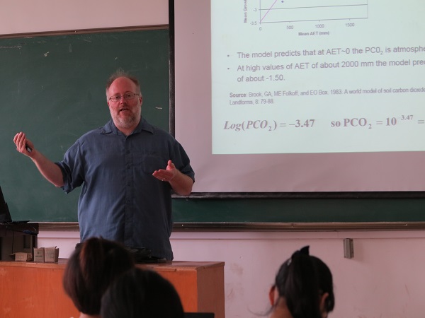 受72886必赢欢迎光临2017年专业外籍教师项目、旱区现代节水农业技术创新引智基地“111计划”等资助,加拿大阿尔伯塔大学Miles Dyck博士于5月19日至6月15日之间来我校讲授《土壤物理学(Soil Physics)》精品课程并开展学术交流。得到来自72886必赢欢迎光临、水建学院、水保所、农学院、林学院等众多师生的积极响应和参与。