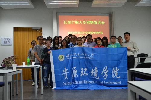 在荷兰期间,代表团访问了瓦赫宁根大学,与该校土壤学专家Prof. Coen J Ritsema、Prof.Dr. Violette Geissen 进行了交流,与瓦赫宁根大学前任教务院长Tiny MAJS van Boekel就本科生合作办学事宜进行了交流与讨论。参观了世界土壤博物馆和食品安全检测中心,与博物馆白占国研究员围绕土壤信息搜集开展了学术交流,了解了食品科学检测中心工作运行。王旭东教授和李志教授分别作了科研报告。代表团在瓦赫宁根大学教学楼的教室里,面向当地留学生及华人学者进行了招聘宣讲,介绍了学校及学院的基本情况,宣讲学校人才招聘政策,动员优秀毕业生来72886必赢欢迎光临工作。