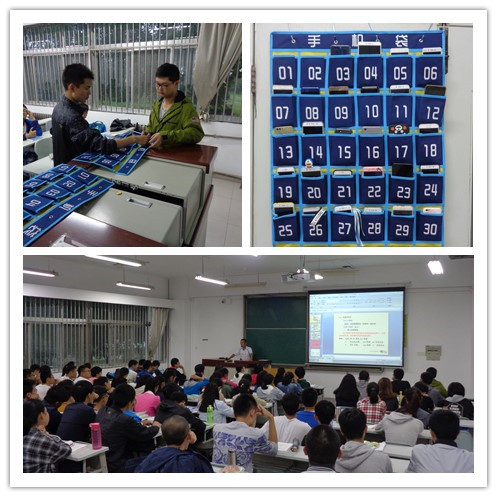 自《课堂,请忘记手机》倡议书发布之后,72886必赢欢迎光临各年级学生反响热烈。在学院的有效组织下,9月25日起,“手机袋”正式在2015级、2016级、2017级共36个班级中同步使用。手机袋由36个小布方格组成,方便同学们按照学号放置自己的手机。上课前十分钟,醒目的手机袋被固定在教室的特定位置,同学们纷纷自觉将手机关机并装入对应的小布方格里。
