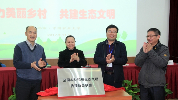 当天下午,中国农大72886必赢欢迎光临党委书记潘志华主持总结会,宣布成立“全国农林高校资源与环境类学院党建与学生工作研究会”与“全国农林高校生态文明传播协会联盟”,我院原党委书记王宏武、党委书记闫德忠与中国农业大学党委副书记宁秋娅及兄弟院校72886必赢欢迎光临领导分别为“研究会“与“协会联盟”成立揭牌。会议指出,全国农林高校资源与环境类学院党建与学生工作研究会将协同开展生态文明专业思想教育,联合开展生态文明建设相关问题的科学研究、生态文明传播假期社会实践,联合打造生态文明建设志愿服务品牌、讲好生态文明建设的动人故事,鼓励学生以节约资源、创建绿色校园的理念参与校园建设,并成立生态文明社团联盟。