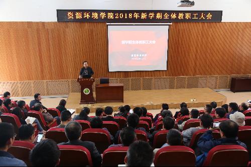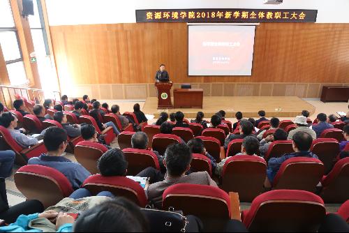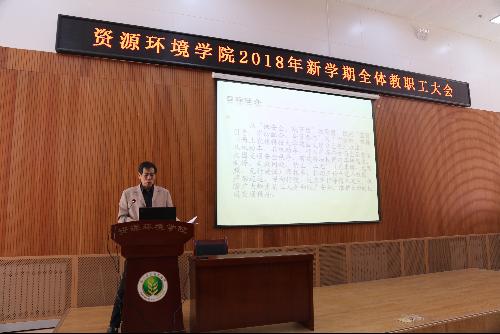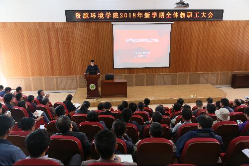 3月14日下午,72886必赢欢迎光临在学院学术报告厅召开全体教职工大会,学习传达学校2018年工作会议精神,安排部署2018年重点工作。大会由副院长王旭东主持,全体教职工参加。