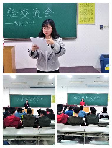 3月13日下午,水保1702班于北校N8109召开了学习经验交流分享会。辅导员李思雯老师和班主任杨萍老师参加了分享会。会议由学习委员张萍主持。