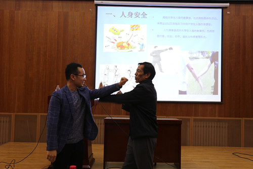 会上,王云峰副院长通过列举我校合校近20年来发生不安全事件和数据,深深吸引了听众的注意力。一组组数据、一件件事例,从人身安全、财物安全、交通安全、消防安全、心理安全、网络安全、国家安全、公共事件等方面深入浅出,全面透彻的为学生进行了讲解,在大家心中埋下了一颗颗安全的种子。从日本小学生住宿前先寻找安全通道到高学历知识分子被诈骗大量钱财等,大量的事例让学生提高了安全意识,增长应对安全风险的能力。除此之外,王云峰副处长通过现场与学生互动,示范讲授面对不法分子迫害时的逃生技巧,用娴熟的身手赢得了在场师生的阵阵掌声。