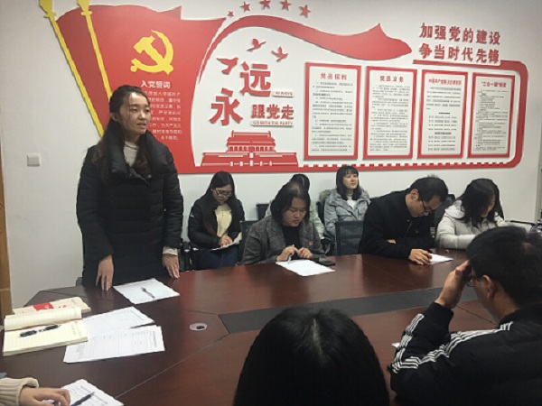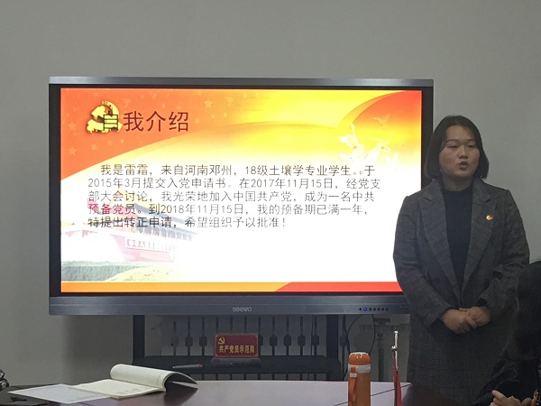 大会第二项,进行了预备党员转正预答辩。雷霜、郑景瑞、张雪娇、高旭、张弘弢五名预备党员针对预备期间思想如何转变、针对缺点是如何改进的、党性发挥在何处进行汇报。汇报后支部成员就其汇报情况提出宝贵建议与不足之处。