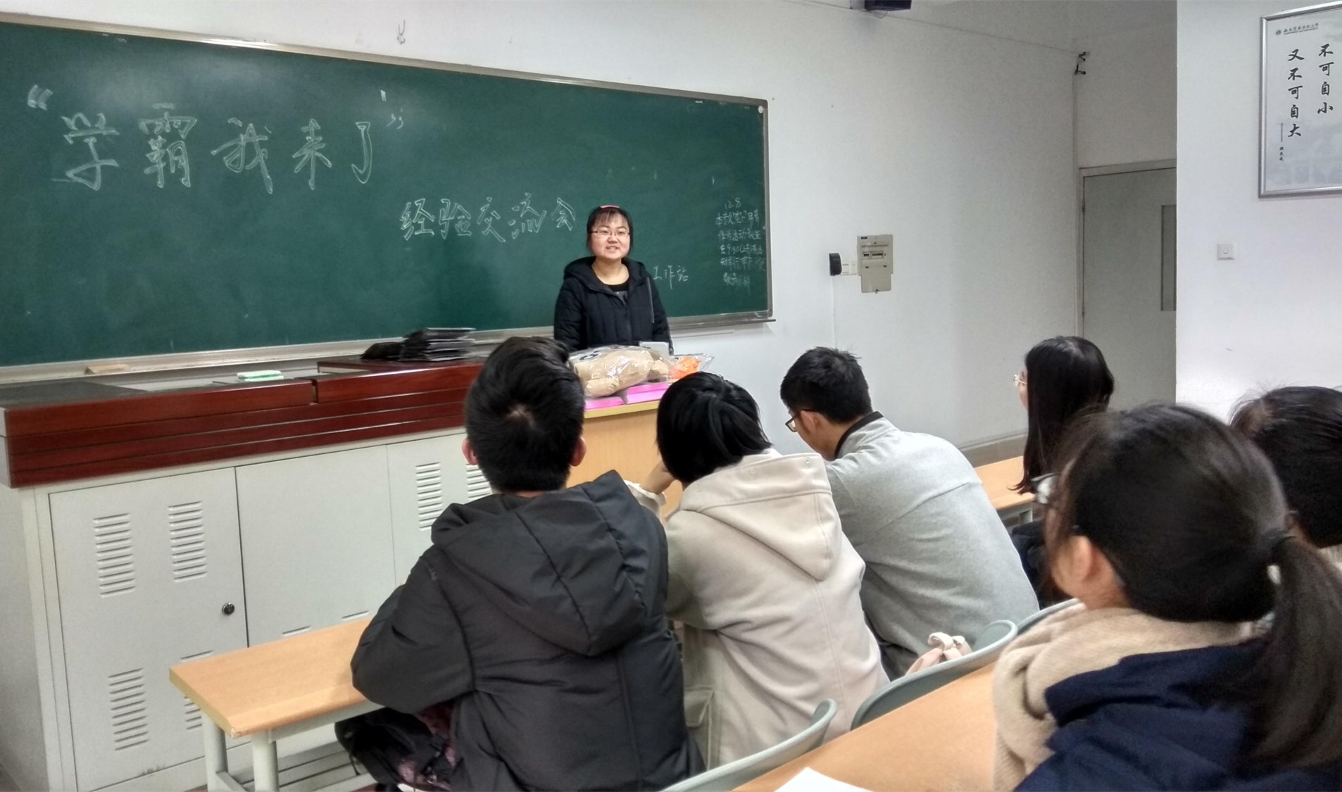 为进一步推动学风建设,营造浓厚的学习氛围,2018年12月8日,继“学霸我来了”线上投票结束后,资环易班工作站在8119教室举办了“学霸我来了”学习经验交流暨颁奖会。优秀笔记的作者交流了做笔记的经验和学习建议,各年级学生听取和交流了做笔记的方法。
