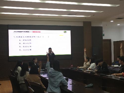本届比赛共设个人赛和团体赛两组,分初赛和复赛两个阶段。初赛阶段共有来自全校10余个学院的121名同学参加,共筛选出14名个人和8支团体进入复赛。复赛设为淘汰赛和排名赛两个环节,淘汰赛以现场限时笔试成绩高低选取8名个人和4支团队进入排名赛,后通过抢答形式,经过激烈角逐,个人赛决出一等奖1名、二等奖2名、三等奖4名及1名优秀奖;团队赛决出一等奖、二等奖、三等奖及优秀奖各1支。
