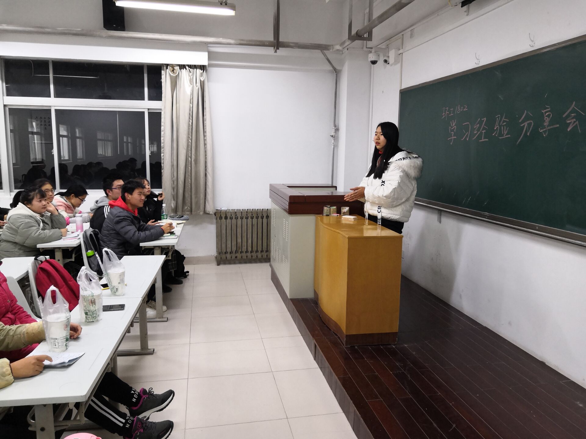 为帮助同学们更好地复习英语四级和结课考试,解决他们在学习过程中存在的疑惑,12月11日晚,环工1802班于8604教室举办学习经验交流会,2017级环工、环科专业第一、二名的同学、环工1802班班助以及环工1802班的同学们参加了此次交流会。
