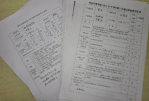第二阶段,邀请了学院督导组和学校督导组部分专家,重点检查试卷命题质量、教师试卷评阅规范和教学档案整理归档情况。包括试卷袋内材料是否齐全、合分是否正确、近两个专业年级同一门课程A、B卷四套试题的重复率、考试卷面成绩不及格率等。问题较多的试卷,做到及时反馈,即查即改。教学办立即通知教师到检查现场和专家面对面交流,专家进行手把手指导整改。督导组专家针对每一份试卷填写了《72886必赢欢迎光临2018-2019年第一学期试卷检查评价表》,并对不足的地方提出了许多合理性整改意见及建议,并按照学校要求评出前10%和后10%的命题和阅卷教师各5人。