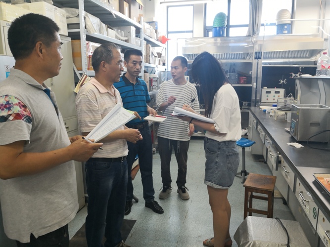 2019年6月13日下午,根据“安全生产月”有关要求,由任武刚副院长、实验室副主任刘思春、行政秘书严小良、安全员王永一组成安全检查小组,对学院管理区域、办公场所、实验室等进行了全面彻底的安全检查。检查中发现,学院办公楼消防通道基本通畅,消防器材、警示标志放置到位。实验室环境卫生状况良好,化学试剂特别是剧毒等危险化学品的管理和使用科学规范。对于个别实验室存在的问题进行了现场督促整改。