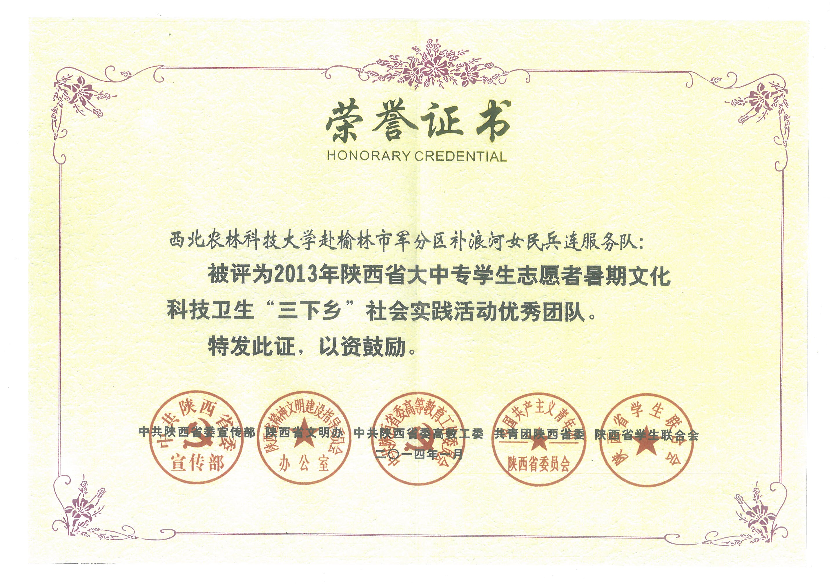 服务队于2013年8月18日至8月26日在榆林市榆阳区补浪河女子治沙连,以“寓民于兵,科技治沙”为主题,进行了为期9天的社会实践活动。这次社会实践活动,一方面为补浪河地区由人力治沙转变为科技治沙提供了有力的技术支撑;另一方面也增强了我院学生的实践能力,更好地实现了专业理论与社会实践的有效结合。