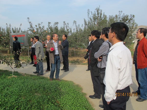 10月19日,与会代表赴富平现代农业综合试验示范站和白水苹果试验示范站进行了现场考察和调研。