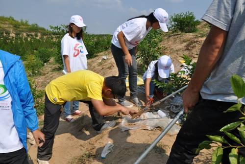 基地调研,参观见习。8月16日,服务队从杨凌出发到达了我校米脂试验站。在魏新光博士的带领下参观了远志山红枣试验基地,他详细介绍了红枣矮化、节水灌溉、土壤水分动态变化等相关实验,服务队成员兴趣盎然,结合自己的专业特点提出了不少问题,收获颇多,更重要的是让课堂所学走出校园,真实感受了书本知识在实际中的应用。此外,服务队还在老师的辅导下重点学习了土壤深层剖面水分监测,茎流计测定树干蒸腾,田间定量灌溉试验等新技术的应用,激发了服务队的学习热情。