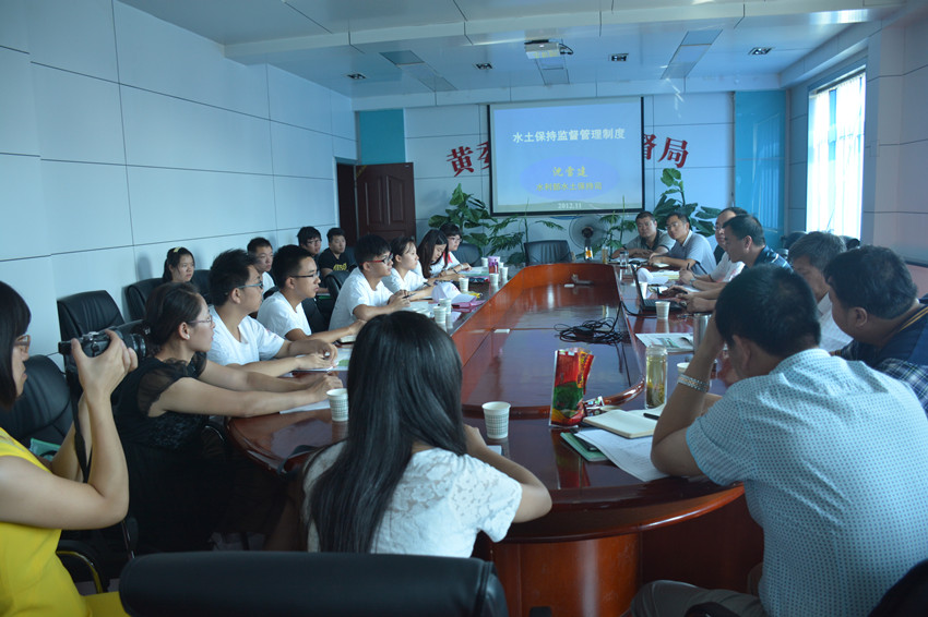 首日,资环榆林服务队与水保监督局领导及工作人员举行了座谈会。带队老师唐帅说明了此行来意,监督局喻局长讲解、展示了一份长达数百页的PPT,阐述榆林及全国水保现状及未来发展趋势。接着,服务队成员在监督局观察了气象标和水保宣传墙、查阅了相关水保资料,使服务队成员受益颇深。