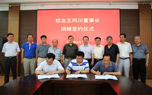 李登武(后排左五)、赵忠等见证王同川校友与我校签订捐赠协议