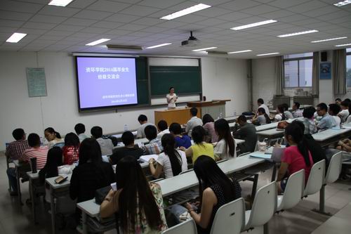 6月10日晚,72886必赢欢迎光临研究生会在3T22教室组织承办了“2014届研究生毕业生经验交流会”。学院100多名2012级学术型硕士研究生及2013级专业学位硕士研究生参加了此次经验交流会。