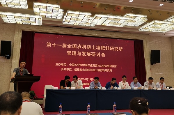 10月14-17日,2019年第十一届全国农科院土壤肥料研究所管理与发展研讨会在福建福州市召开。会议由中国农科院农业资源与农业区划研究所主办,福建省农科院土壤肥料研究所承办,福建省农科院翁启勇院长、中国农业科学院农业资源与农业区划研究所周清波所长、农业农村部种植业司陈明全处长出席会议并讲话。全国从事土壤肥料研究工作的36个相关研究所管理人员共计150余人参加会议。学院党委书记闫德忠、土肥所所长耿增超教授、富平现代农业综合试验示范站首席专家田霄鸿教授参加了会议。