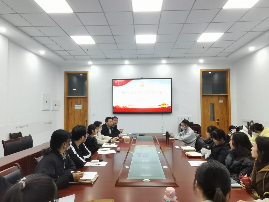为优化学院研究生党建工作流程,提高工作效率;树立严谨、高效的工作作风。11月22日,学院召开研究生党建骨干工作实务交流会。学院辅导员朱陇强、党建协管兼职辅导员尉熊熊参加交流会。会议在轻松、活泼的氛围下展开,并达到了预期目标。