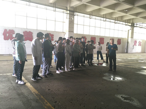 上午10时,同学们首先来到了陕西省铜川市王石凹煤矿工业遗址,了解被誉为西北“煤矿长子”的王石凹煤矿从典型的煤矿园区到工业遗址公园的蜕变之旅,工作人员介绍,王石凹煤矿是上世纪国家"一五"期间156个重点工程建设项目、同时也是苏联援建的156个项目之一,这里有被誉为“亚洲最大单边楼”的煤矿工人宿舍,有充满苏式气息的办公楼,有当时我国西北地区的第一座最大的机械化竖井,在上世纪,这里曾挖出无数被煤矿工人称为乌金瀑布的煤料矿石,在经过主井提升及筛选,短短12分钟就能装满一火车车厢,从而供给整个西北地区工业运转及能源生产,在那时,工人们勤劳朴实,始终将煤矿事业放在第一位,形成了“一不等、二不怕、三不埋怨、四不叫苦,埋头苦干往上搞”的王石凹精神。