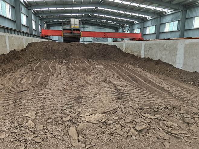 洛川畅源农业发展责任有限公司的厂区内,学生们首先看到一排整齐的车间,包括用于羊粪等废弃物堆肥处理的发酵车间和后熟处理车间等。配备有粉碎机、配料机和混料机的配料车间可对原料、腐熟堆肥、腐殖酸和硫酸铵等物料进行破碎、筛分和混合。堆肥过程中,首先将准备好的主料和辅料按照一定比例充分混合均匀,为了保证堆肥过程的顺利进行,该公司的槽式发酵系统设置了排水和通风的系统。排水管道能够及时排出多余的水分,避免堆肥过程中出现过度湿润或缺氧的情况。通风系统则调整通风量和温度,以确保堆肥过程中有足够的氧气供应和适宜的温度,促进微生物的繁殖和有机物质的降解转化。