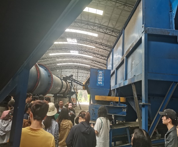 这个车间还设置除尘系统,以及利用水池吸附沉降和重力沉降原理对粉尘进行预处理的回收再利用。学生们认真了解每个设备的用途和特点,并观看了机器自动化制肥的全过程,同学们都感觉到受益匪浅。