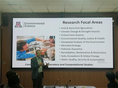 首先,李志副院长介绍了此次来校访问的亚利桑那大学Jon Chorover教授一行,对他们的来访表示欢迎,并充分表达了加强相互之间学术交流的必要性。随后,环境科学与工程系主任李荣华教授代表环科系再次对Jon Chorover教授一行的到来表示热烈欢迎,并详细介绍了我院环境科学的研究方向。